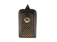 Футляр для сотового телефона Elisir, коллекция "Снуд" с крупным золотистым кристаллом Swarovski, из натуральной кожи с перфорацией, стандартного размера. Без молнии, телефон выдвигается при помощи "язычка". В комплекте 2 ремешка: короткий (на руку), длинный (на шею). Размеры: 120х65х20 мм