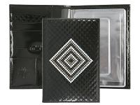 Бумажник водителя "Elisir", коллекция «Алессандра» с композицией из белых и черных кристаллов "Swarovski", стандартного размера, из натуральной кожи. Внутри 3 кармана для кредиток, карман для SIM карты и 2 открытых кармана из кожи. Упакован в подарочную коробку с тиснением "Elisir". Размеры (XxYxZ): 107х138х13